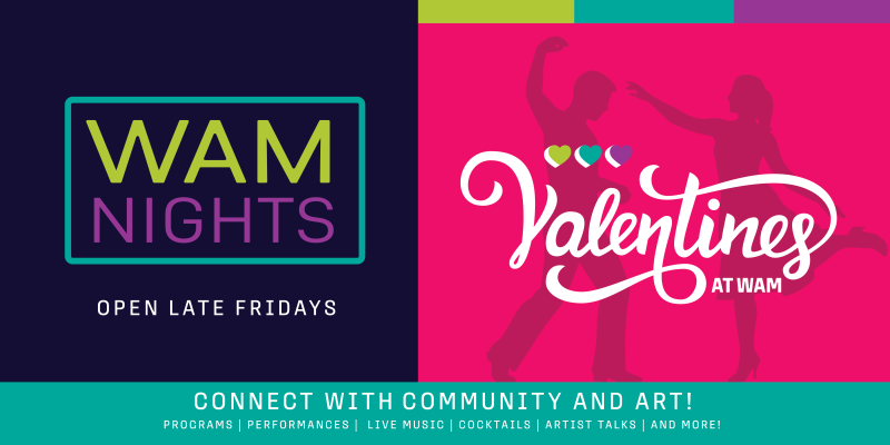 About WAM Nights: We’re open late on Fridays until 9 pm. Start your weekend with after-hours access to the galleries, shopping in the Museum Store, and a stop at EAT for flatbreads, salads, coffee, and specialty drinks. WAM Nights feature programs with artists, musicians, and performers, offering a dynamic way to experience the museum. The building comes to life with local creatives during WAM Nights—an energizing, creative start to your weekend. WAM Nights are generously supported by Art Bridges Foundation’s Access for All program.